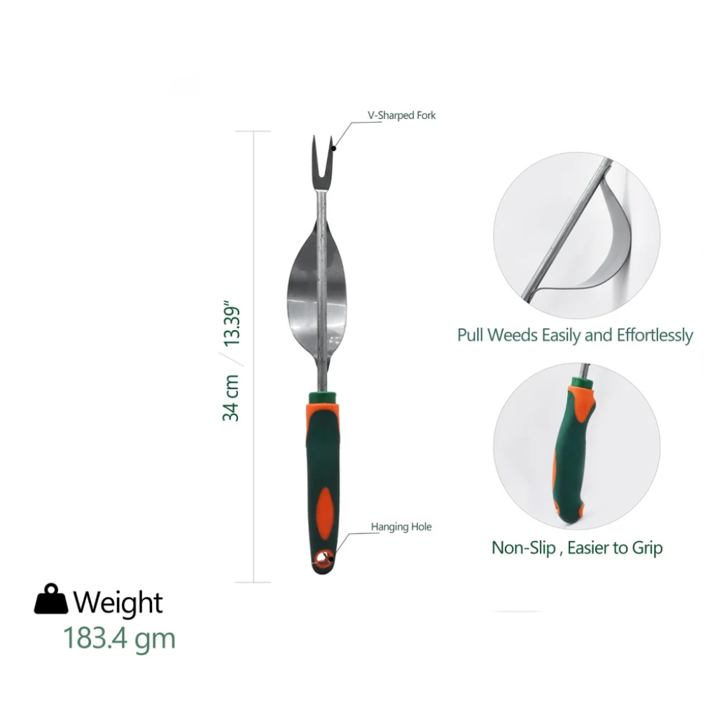 The Pushkara Hand Weeder (P) is a professional-grade tool designed for precision weeding in tight spaces. Its pointed blade and comfortable handle allow for effortless removal of stubborn weeds around pots, borders, and indoor plants. Ideal for maintaining a clean and healthy garden.